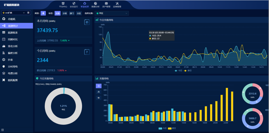● 重點耗能設(shè)備(設(shè)備集群、工藝段)監(jiān)測與能耗統(tǒng)計分析: